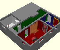 The rooms are painted in roughly the colors in the CAD sketch.